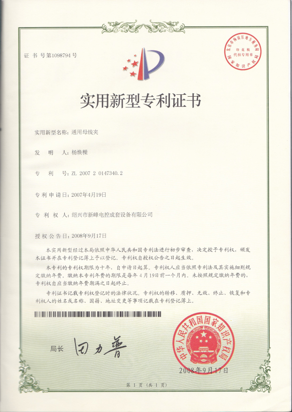 企業(yè)專(zhuān)利證書(shū)