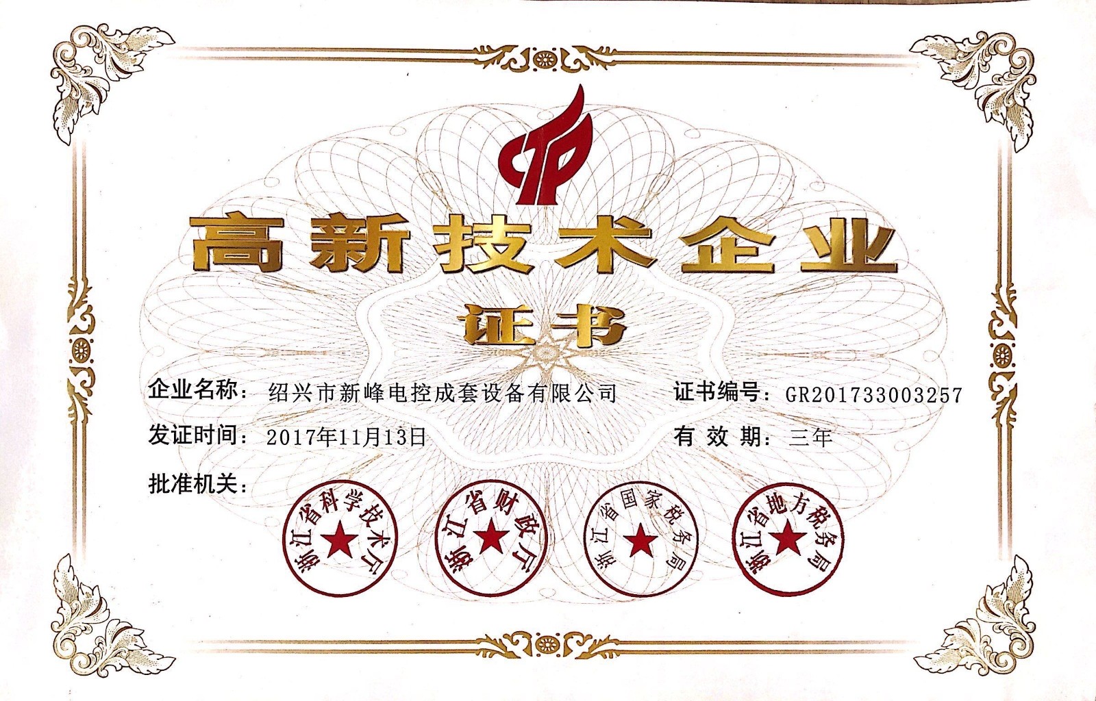國(guó)家高新技術(shù)企業(yè)證書(shū)-企業(yè)榮譽(yù)證書(shū)