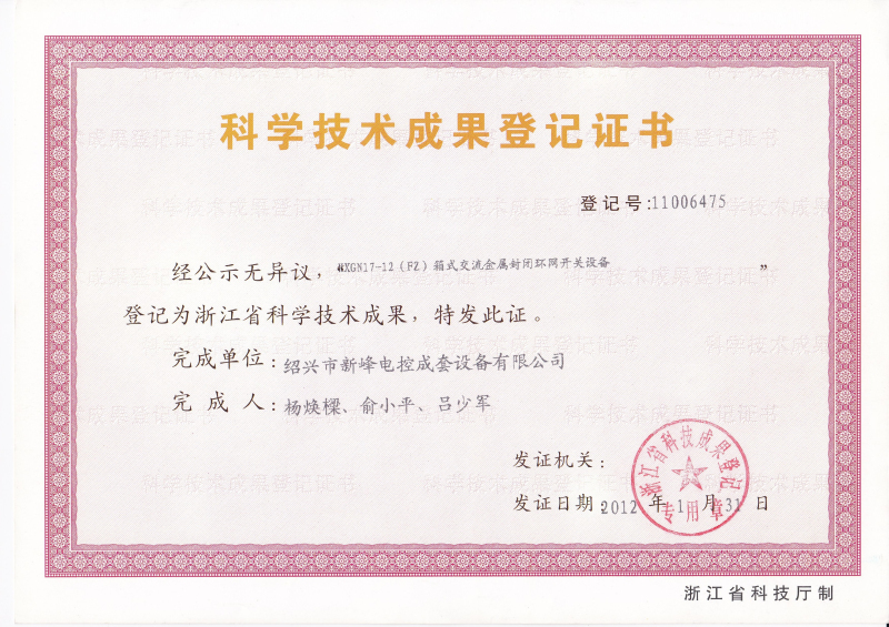 科技成果證書2012 11006475-新產(chǎn)品科技證書