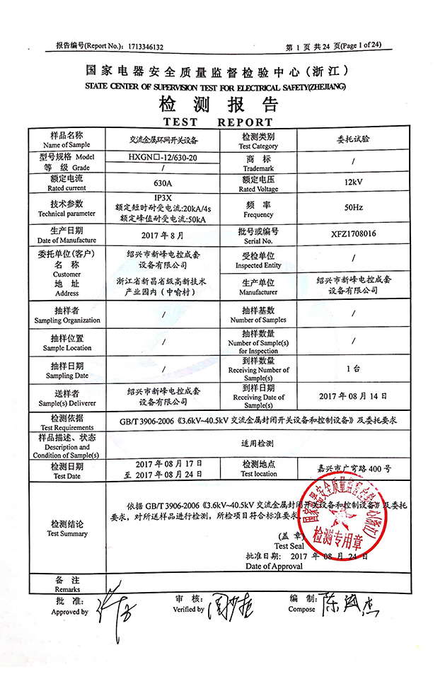 HXGN-12/630-20-高壓設(shè)備檢測(cè)報(bào)告